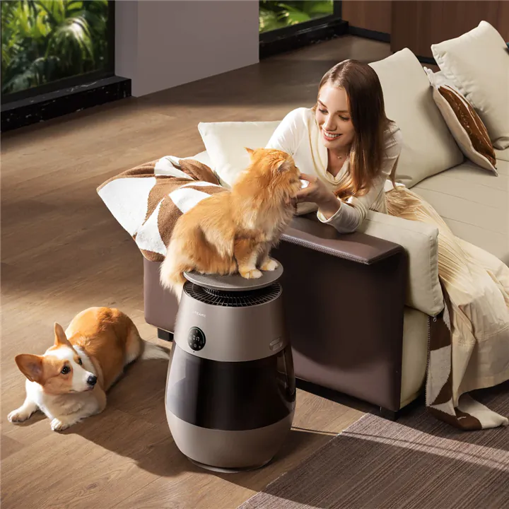 360°high-negative-pressure air return system with Multi-stage purification captures hair and odors. Transparent compartment, curved top, and LED/RGBW lighting combine style and function-all app-controlled for smart, effortless freshness.