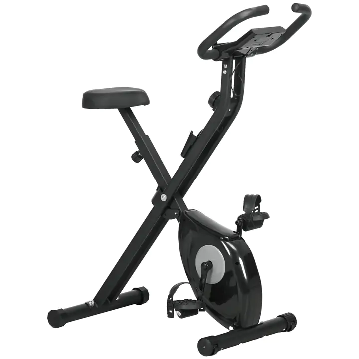 Maximize your home workout in minimal space with this foldable indoor exercise bike, designed for smooth, quiet performance and easy storage. Featuring 8 levels of magnetic resistance, it allows you to customize your workout intensity to match your fitness goals. The built-in LCD screen tracks time, speed, distance, calories, and more, while an integrated tablet and phone holder adds convenience to your routine. A 7-level adjustable seat with generous padding ensures personalized comfort and support. Ideal for small spaces, this compact bike folds to nearly half its size and includes wheels for effortless mobility.