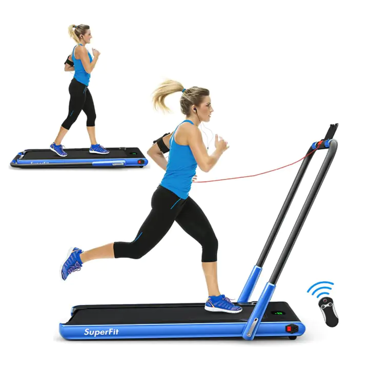 The Superfit 2-in-1 Folding Treadmill offers two modes to fit your workspace: a walking pad (1-4 km/h) when folded and a running treadmill (1-12 km/h) with the handrail raised. The 2.25HP ultra-quiet motor and 7-layer shock-absorbing belt ensure a silent, joint-friendly workout. It features an LED display, Bluetooth speakers, and Smart App connectivity for real-time tracking. Arriving fully assembled, its compact design and transport wheels allow for easy storage under a bed or desk.