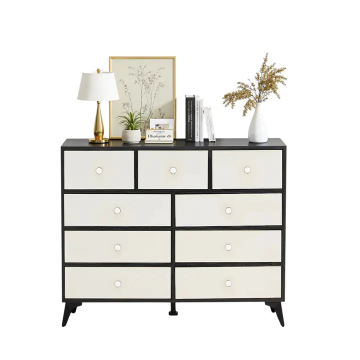 9-Drawer Storage Cabinet, Dresser with Wood Desktop, White (Black)