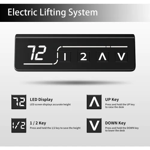 Electric Standing Desk: The electric standing desk allows you to release your hands and effortlessly customize the desired height between 28' to 46' (72 to 117 cm). With a high-quality motor, the adjustable desk operates quietly at less than 55dB.