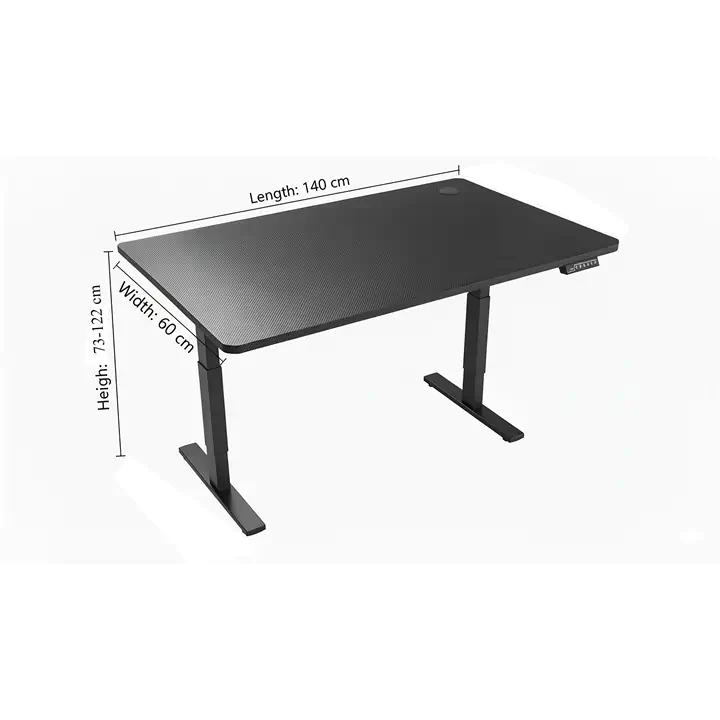 Bureau assis-debout électrique 140 x 60 cm, hauteur réglable de 73 à 122 cm, surface texturée en fibre de carbone, mémoires, moteur puissant, détection de collision – Noir