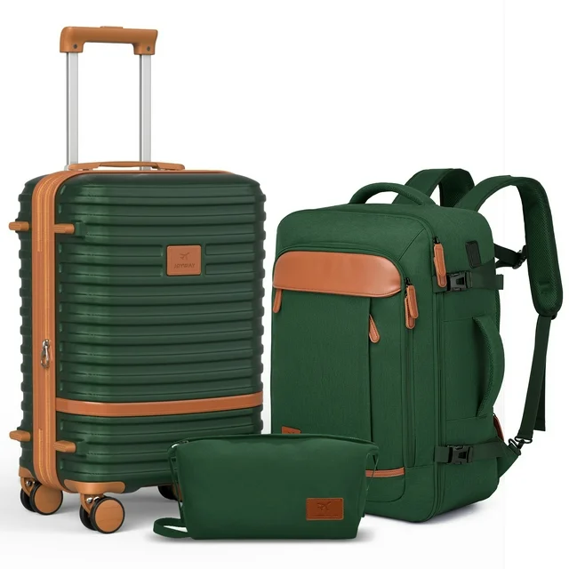 The Joyway 3-piece hardshell luggage set is built for smooth, secure travel. Made from lightweight ABS material, it resists impact and scratches while remaining easy to handle. The set includes 20', 24', and 28' suitcases with spacious interiors, reinforced zippers, 360° silent spinner wheels, and a built-in TSA-approved lock for added security. Available in multiple colors, this luggage set is ideal for air travel, vacations, and business trips where durability, mobility, and organized packing are essential.