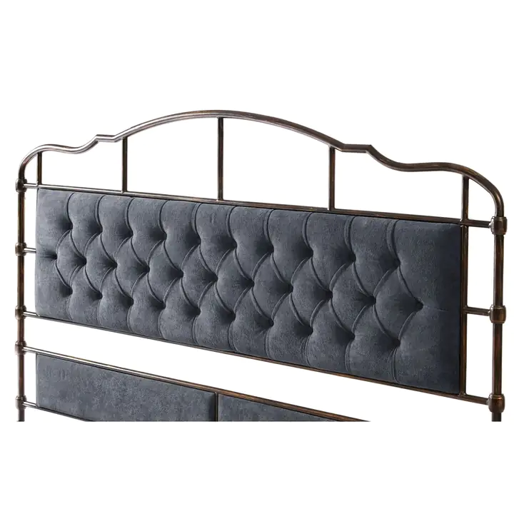 This platform bed features a rustic yet elegant design, highlighted by a curved, button-tufted headboard upholstered in premium Boucle fabric, making it a stylish addition to any bedroom. Constructed with a durable bronze-finished metal frame and wooden slats, it provides strong, reliable support for various mattress types. The tall headboard offers comfortable back support for reading or relaxing, while the slat system eliminates the need for a box spring. Designed for convenience, the bed comes with all necessary tools and clear instructions for easy assembly.