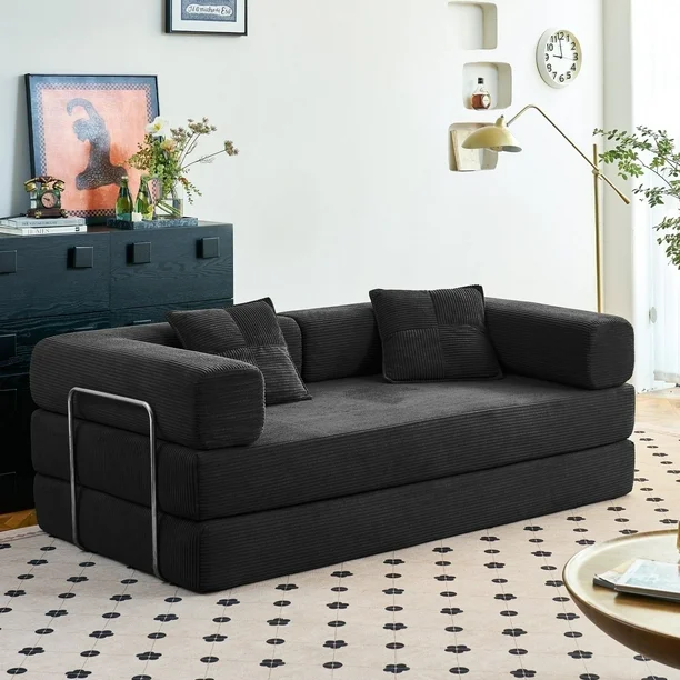 Transform your space with this versatile convertible sofa-bed. With a length of 81.6'', it reclines to a flat sleeping surface and includes two comfy throw pillows. The durable upholstery and compact design are perfect for small rooms, studios, or guest setups. Easy to adjust and built for everyday comfort.