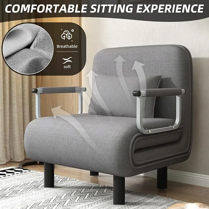 Améliorez votre espace avec ce fauteuil-lit convertible 4-en-1. Conçu avec un dossier réglable à six positions, des accoudoirs et des coussins amovibles, il allie confort et praticité. Idéal pour une utilisation intérieure ou extérieure, il se transforme facilement en lit pour se détendre.
